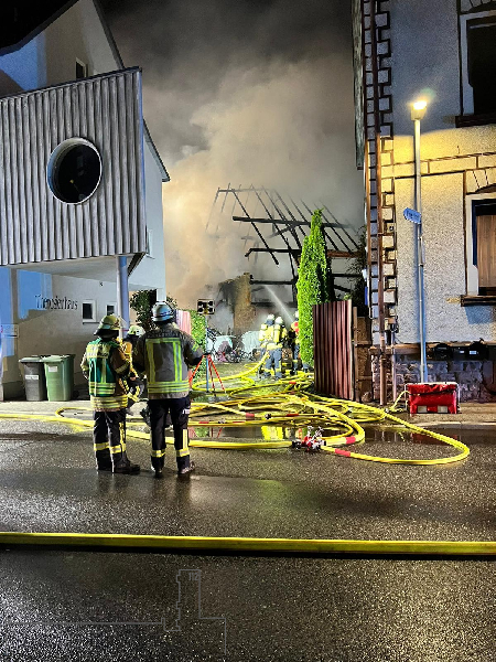 Um die letzten Brände in dem völlig zerstörten Gebäude ablöschen zu können, wurden Teile durch das THW mit einem Bagger abgetragen. Die Nachlöscharbeiten der Feuerwehr Malsch zogen sich noch bis ca. 06:00 Uhr hin.