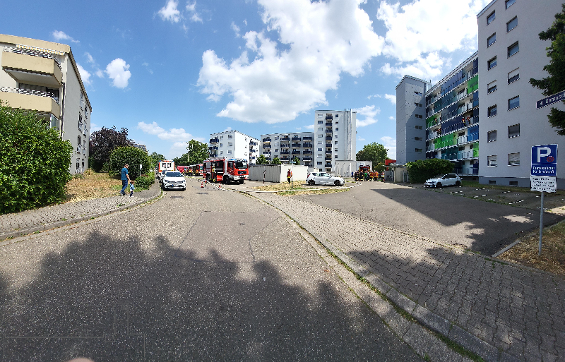 Die Feuerwehr Ettlingen wurde mit der Abteilung Ettlingen-Stadt, dem Löschverband Tal, der Führungsgruppe und dem Einsatzleitwagen 2 der Feuerwehr Malsch zu einem Brand in einem Wohnkomplex alarmiert.