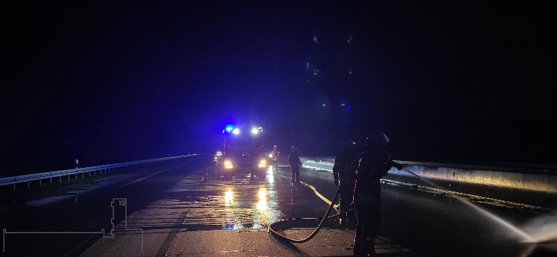 Dort musste nach einem Verkehrsunfall zwischen einem PKW und einem Tier auf einer Länge von 200 Metern die Richtungsfahrbahn gereinigt werden.
