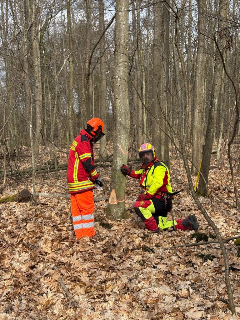 Gemeinsam mit den Ausbildern von Wood Commander wurde sowohl im Wald als auch am Spannungssimulator trainiert. Dabei lag der Fokus auf dem sicheren und kontrollierten Fällen von Bäumen mittels Sicherheitsfälltechnik sowie auf dem fachgerechten Erkennen und Lösen von Spannungen im Holz – eine Kernkompetenz bei Einsätzen nach Stürmen oder bei umgestürzten Bäumen.