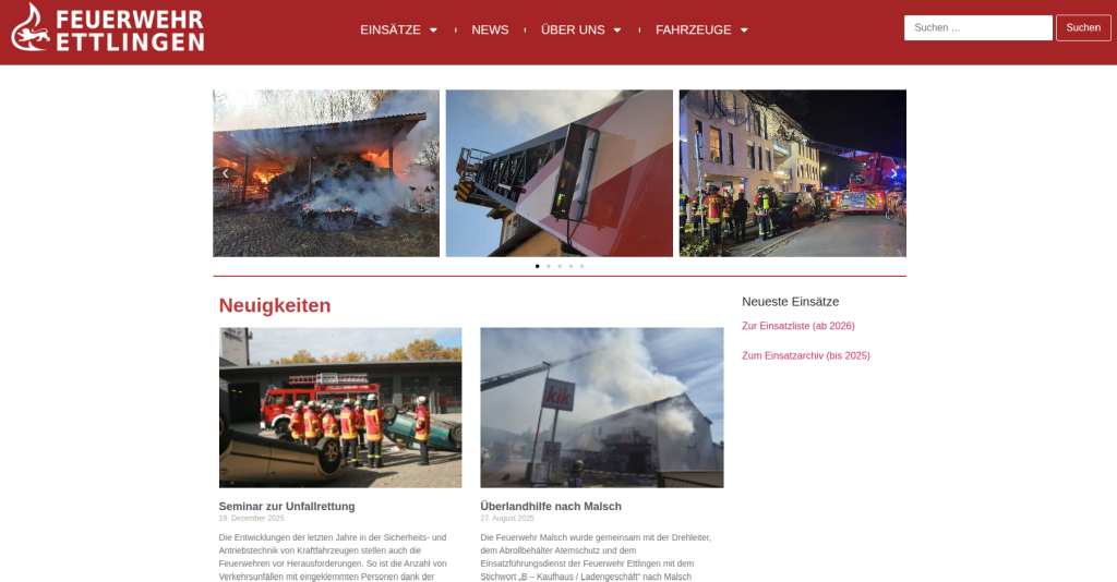 Herzlich Willkommen auf der neuen Website der Freiwilligen Feuerwehr Ettlingen. Hier präsentieren sich zukünftig alle sieben Abteilungen der Feuerwehr Ettlingen und halten Sie zu Einsätzen, Veranstaltungen und sonstigen Tätigkeiten aus dem Feuerwehralltag auf dem Laufenden. Wenn Sie sich durchs Menü klicken, werden Sie feststellen, dass noch nicht alle Bereiche fertig sind. Hier bitten wir Sie […]