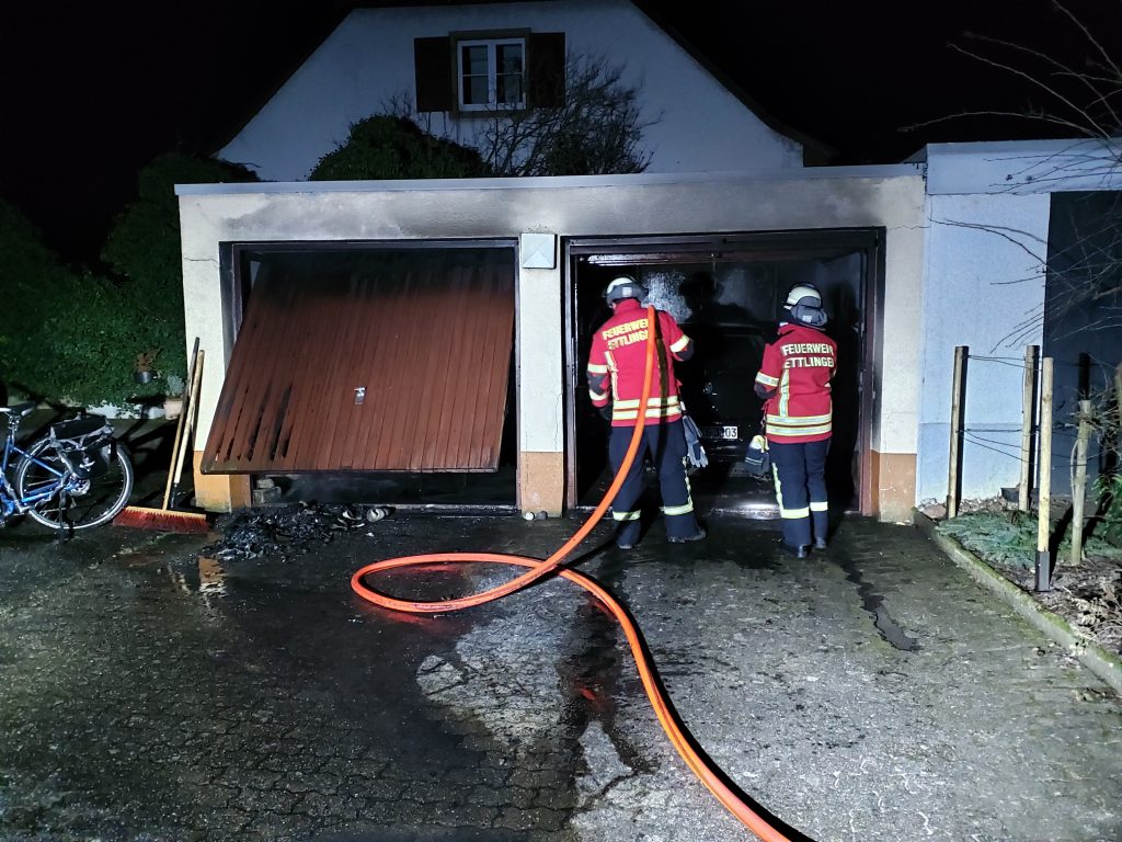 Mit weiteren Kräften, welche sich noch im Gerätehaus befanden, wurden sie zu einem Garagenbrand in die Karl-Friedrich-Straße gerufen. In der freistehenden Garage geriet abgestelltes Material in Brand.