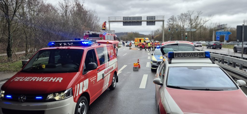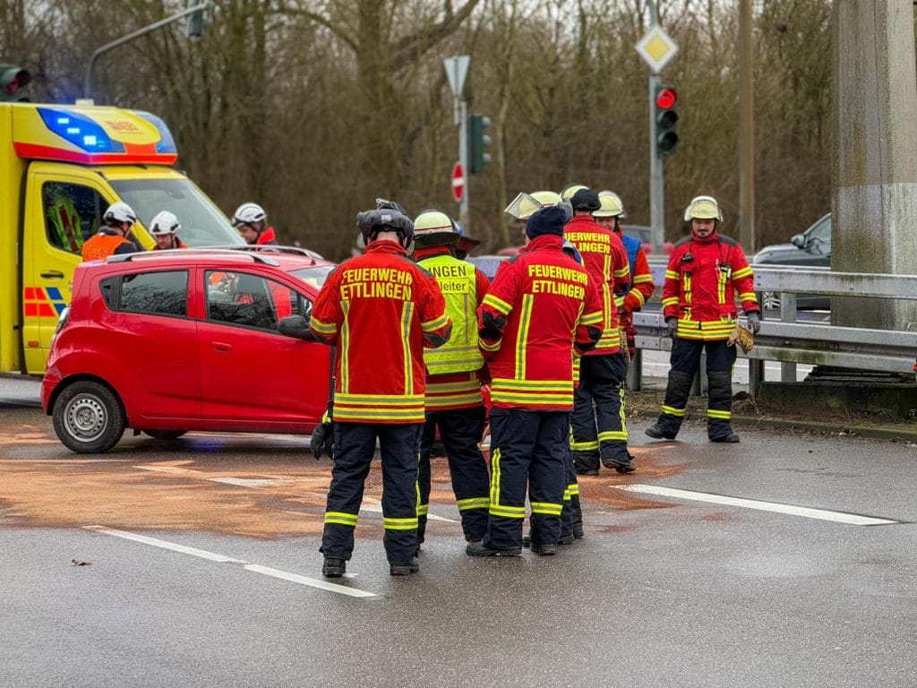 Nach einem Verkehrsunfall an der Kreuzung B3 / AS KA-Süd kam es zum Austritt von Betriebsstoffen aus einem verunfallten Kraftfahrzeug. Die Feuerwehr nahm die Betriebsstoffe auf und klemmte die Batterie des Fahrzeugs ab.