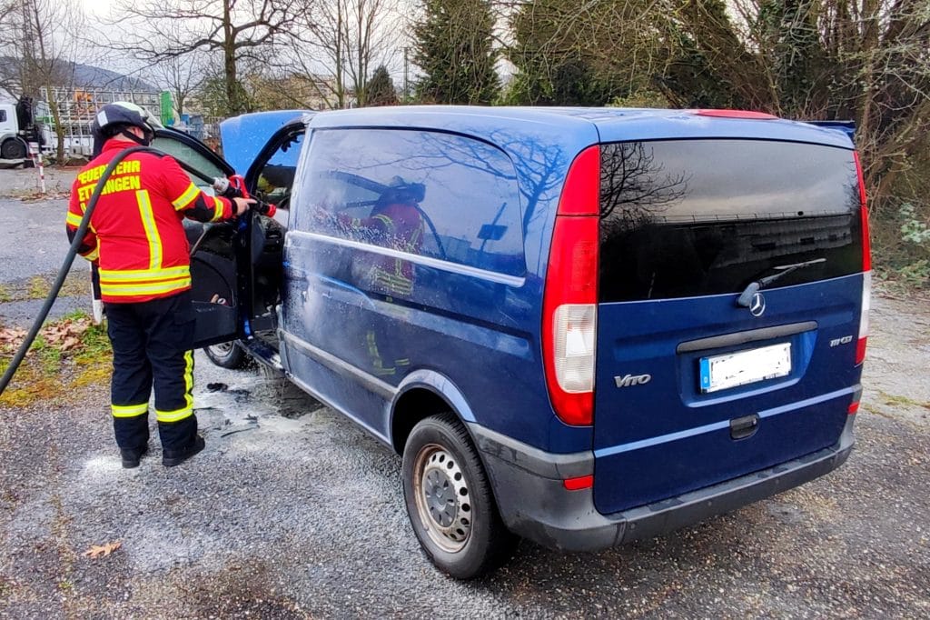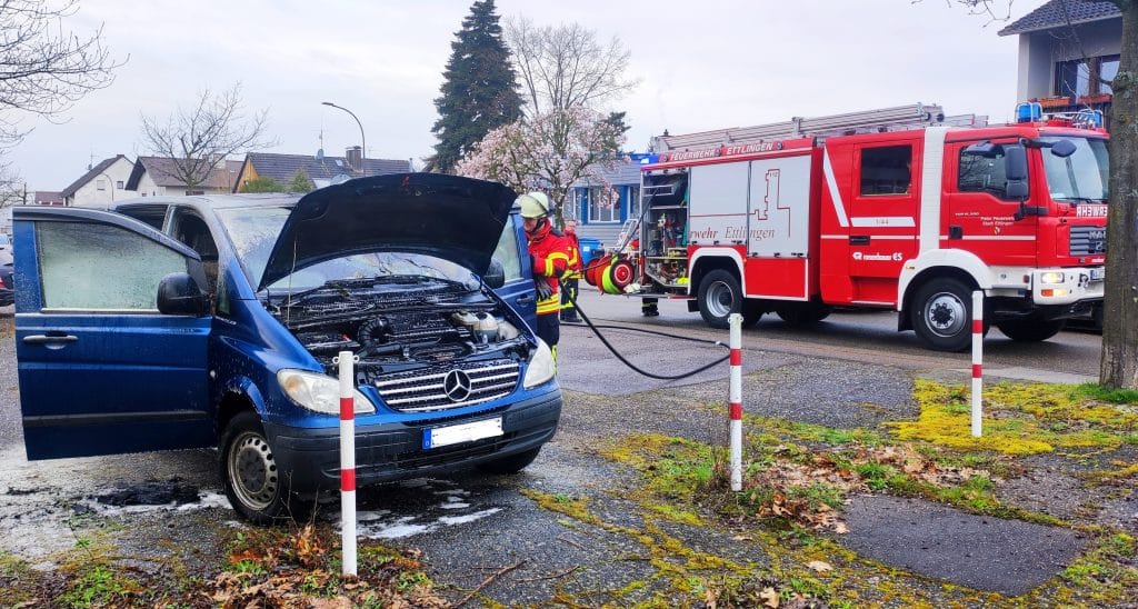 Die Feuerwehr Ettlingen wurde zu einem Pkw-Brand im Industriegebiet Ettlingen-West gerufen. An einem Pkw kam es zu einem Entstehungsbrand, der größtenteils von Passanten mit mehreren Feuerlöschern gelöscht werden konnte.