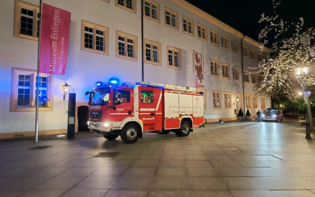 Der Löschzug der Abteilung Ettlingen-Stadt wurde mit dem Rettungsdienst und der Polizei zur ausgelösten Brandmeldeanlage im Schloss Ettlingen alarmiert. Bei der Erkundung konnte keine Auslöseursache festgestellt werden.