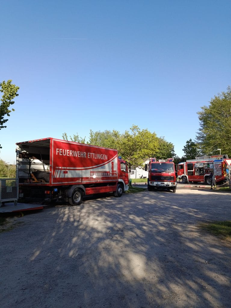 Nach der ersten Nachschau am Donnerstagvormittag durch die Abteilung Schöllbronn wurden am Donnerstagabend die Abteilungen Schöllbronn, Schluttenbach, Ettlingenweier und Ettlingen-Stadt zu einem Arbeitseinsatz alarmiert. Ziel war die Rettung geschützter Amphibien in einem ausgetrockneten Feuchtbiotop.