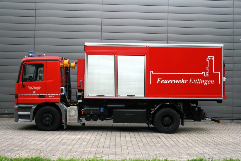 Der Abrollbehälter wurde als AB-Streu ersteigert und in Zusammenarbeit mit einem LKW-Aufbauhersteller umgebaut. Der Innenausbau wurde vom hauptamtlichen Personal gefertigt.