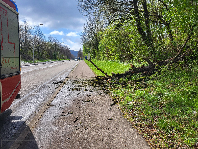 Durch das Führungs und Lagezentrum der Polizei wurde ein Baum gemeldet, welcher über den Radweg an der Karlsruherstraße liegen soll.