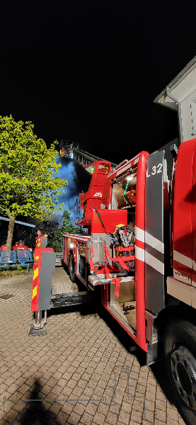 Durch die Drehleiter wurde zunächst eine Riegelstellung zu zwei benachbarten Gebäuden aufgebaut. Nachdem die Feuerwehr Malsch die Riegelstellung mit mehreren C-Rohren übernommen hat, konnte die Drehleiter zur Brandbekämpfung des Gebäudes eingesetzt werden. Durch den massiven Löschangriff mit mehreren Rohren konnte ein Übergreifen des Feuers auf die angrenzenden Gebäude weitestgehend verhindert werden.