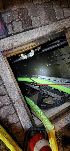 Durch einen technischen Totalausfall des Hebewerk lief die Unterführung voller Wasser. Zusammen mit dem Abwasserbetrieben der Stadt Ettlingen wurde nach einer Lösung gesucht, um die Straße vom Wasser befreien zu können und um etwaige Regenereignisse am Wochenende überbrücken zu können.