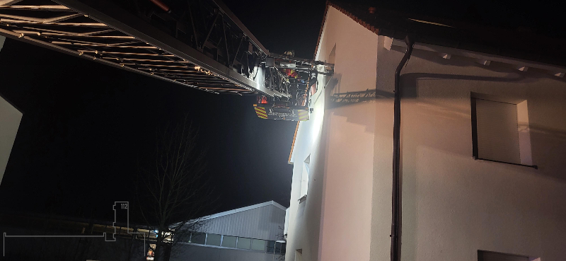 Eine Person in lebensbedrohlich Zustand musste über die Drehleiter gerettet werden, da eine Rettung über den Treppenraum nicht möglich war.