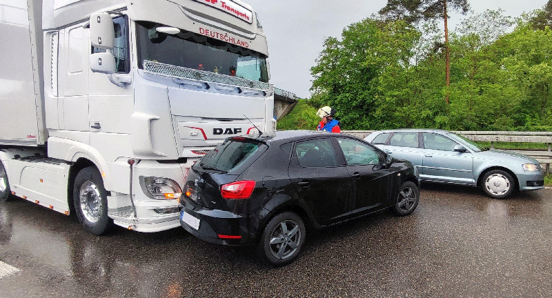 Mit dem Stichwort "VU eingeklemmte Person" wurde die Abteilung Ettlingen - Stadt auf die B3 zwischen Kiesdreieck und L605 gerufen. Nach einem Verkehrsunfall zwischen einem Sattelzug und einem Pkw war eine Person in ihrem Fahrzeug eingeschlossen und konnte dies nicht mehr selbst verlassen.