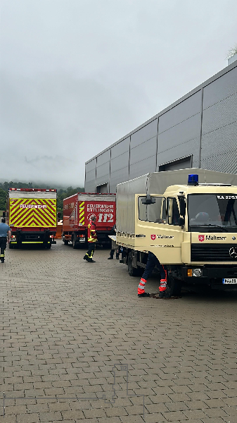Durch die Gerätewagen der Malteser und aus Kronau wurden 12 Gitterboxen mit Sandsäcken nach Pfinztal gebracht. Die Fahrzeuge aus Waldbronn und Ettlingen stehen ab sofort einsatzbereit mit weiteren 12 Gitterboxen Sandsäcken für die Feuerwehr Pfinztal zur Verfügung.
