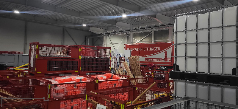 Um 22:01 Uhr wurde der Zug Logistik SÜD (bestehend aus den Gerätewagen Transport der Feuerwehr Ettlingen, Waldbronn und Weingarten) von der Unteren Katastrophenschutzbehörde erneut in das Katastrophenschutz- und Einsatzmittellager in Ettlingenweier gerufen. Für die bevorstehende Überlandhilfe des Wasserrettungszuges Baden III und der Logistikeinheit am 03.06.2024 in das Katastrophengebiet in Bayern mussten die Komponenten für die vollautarke "Base of Operations" geladen werden.