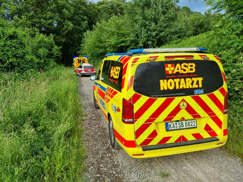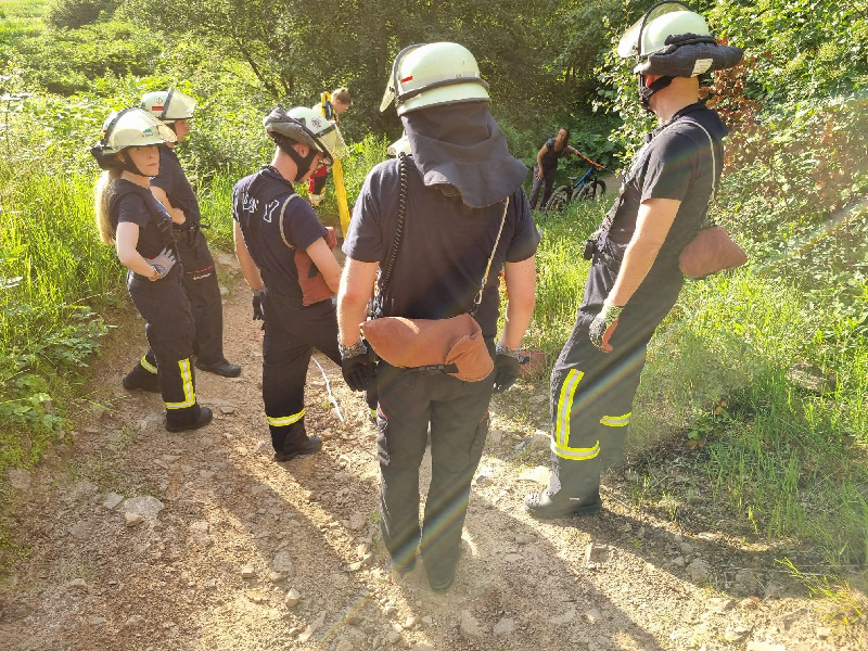 Kurz vor der Übung der Abteilung wurde die Feuerwehr Ettlingen vom Rettungsdienst zur Rettung einer Person in lebensbedrohlichem Zustand auf der Strommast-Downhillstrecke gerufen.
