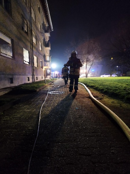 In einer Wohnung im 3. Obergeschoss kam es zu einem Brand. Entgegen der Notrufmeldungen waren keine Personen mehr in der betroffenen Wohnung, sodass der Brand von einem Trupp unter Atemschutz mit einem C-Rohr abgelöscht werden konnte.
