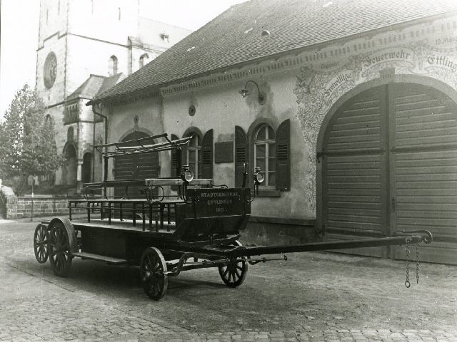 Das am 27. Juli 1846 von Christian Hengst gegründete Durlacher Pompierkorps bildete das Vorbild für die Gründung eines freiwilligen Pompierkorps auch in Ettlingen. Am 7. März 1847 traten eine Anzahl hiesiger Bürger und Einwohner zusammen, dies war das Gründungsdatum der Ettlinger Feuerwehr.
